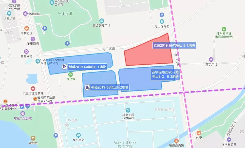 2、西侧紧挨着的是去年12月份由徐州新盛底价摘得的龟山6-1地块(总价3.52亿,成交楼面价5501元/㎡)和龟山6-2地块(总价2.99亿,成交楼面价5500元/㎡)。目前该地块还未动工。