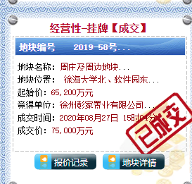 最终该地块由彭家置业(徐州城市轨道交通公司+国资委)拿下,